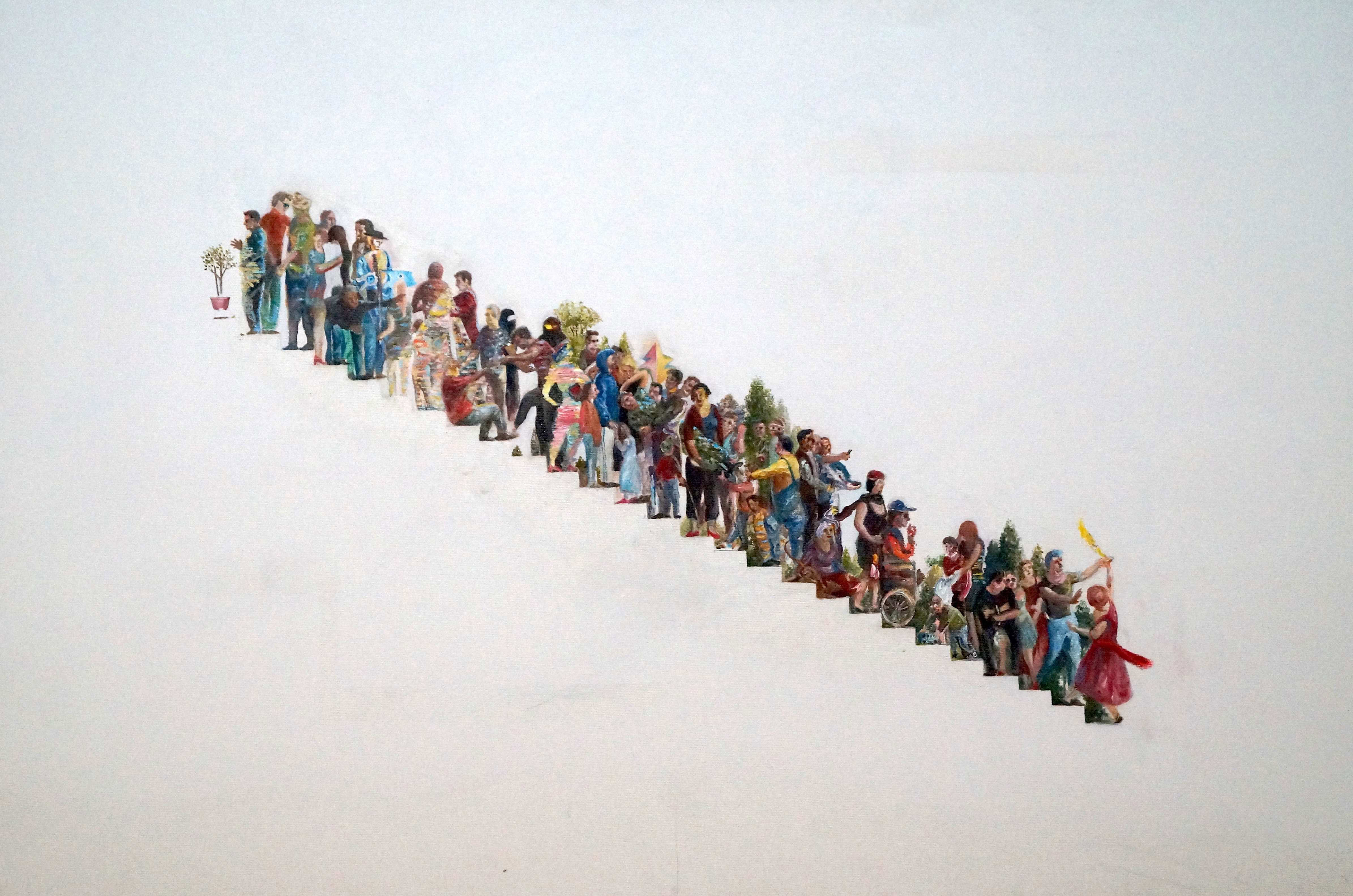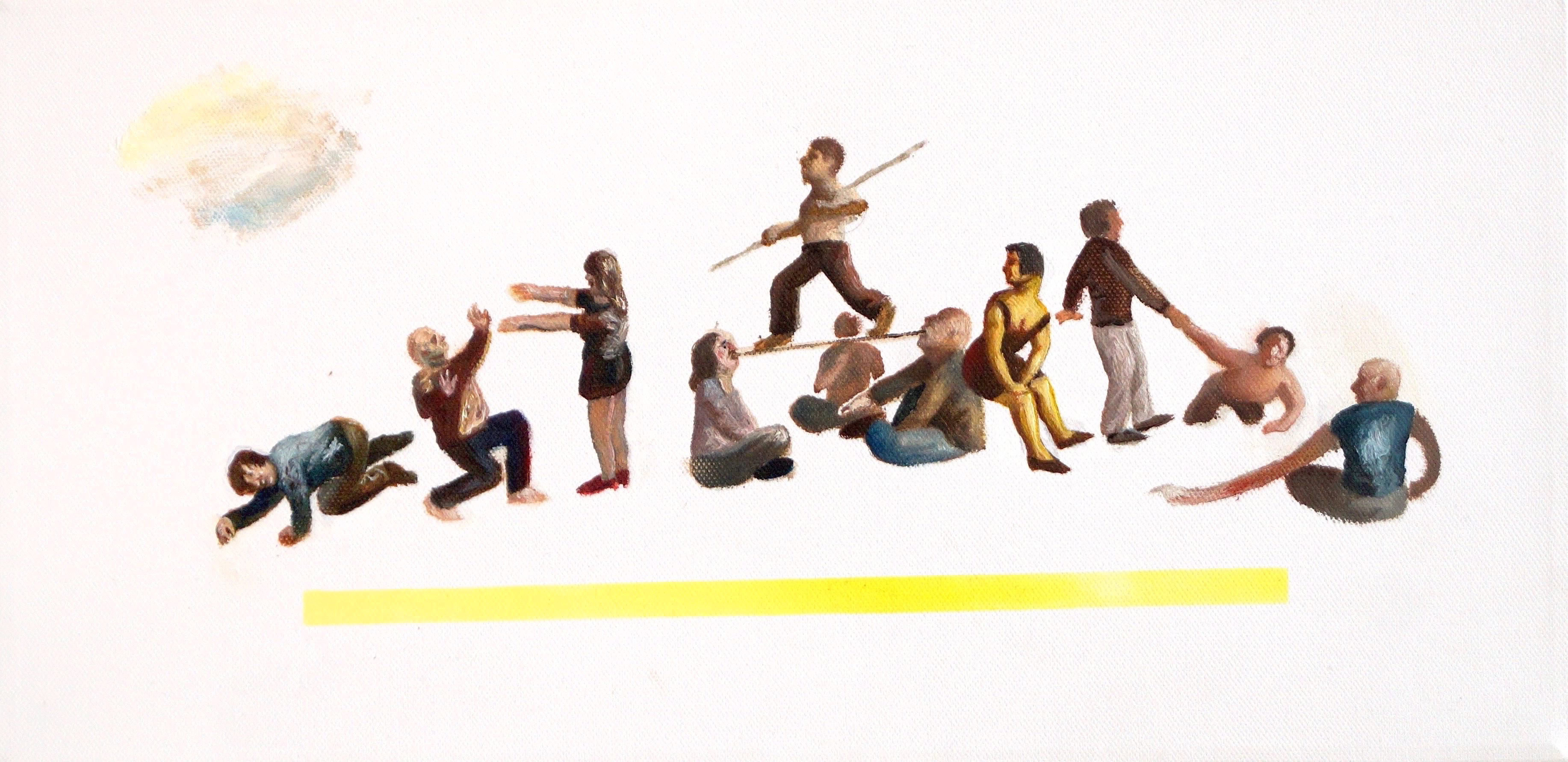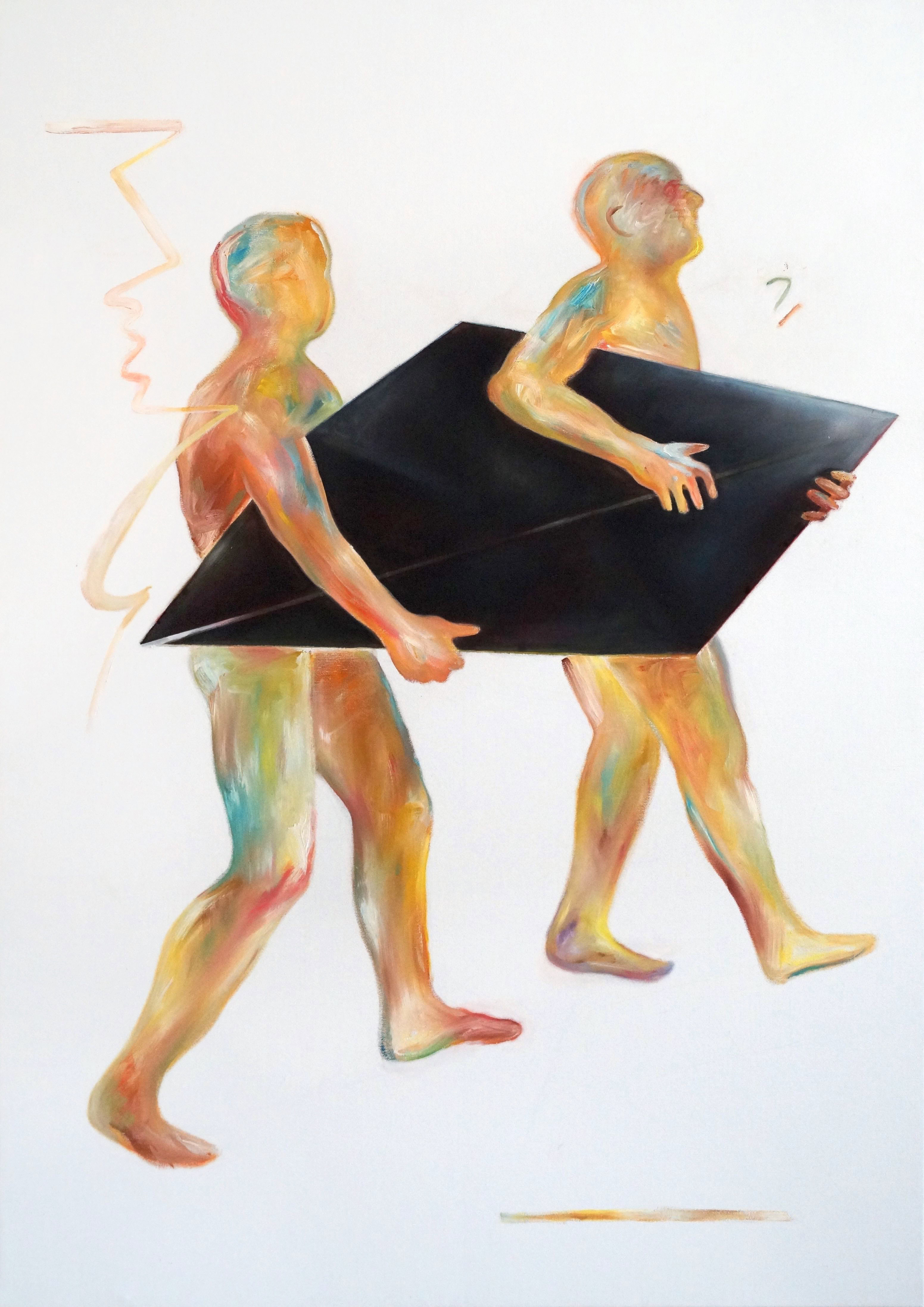 besteht aus Arbeiten spontan entstandener figurativer Gegenüberstellungen und Arbeiten, denen weitreichende Recherchen u.a. zu Gesellschaftsstrukturen vorausgehen. Salome etwa entstand spontan, inspiriert durch Filme und Lektüre. Komplexe Bilder wie „A Short history of violence“ erarbeite ich aus vielen Ideenskizzen und Recherchen.