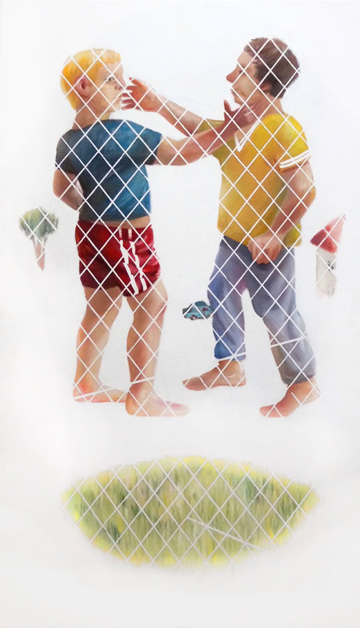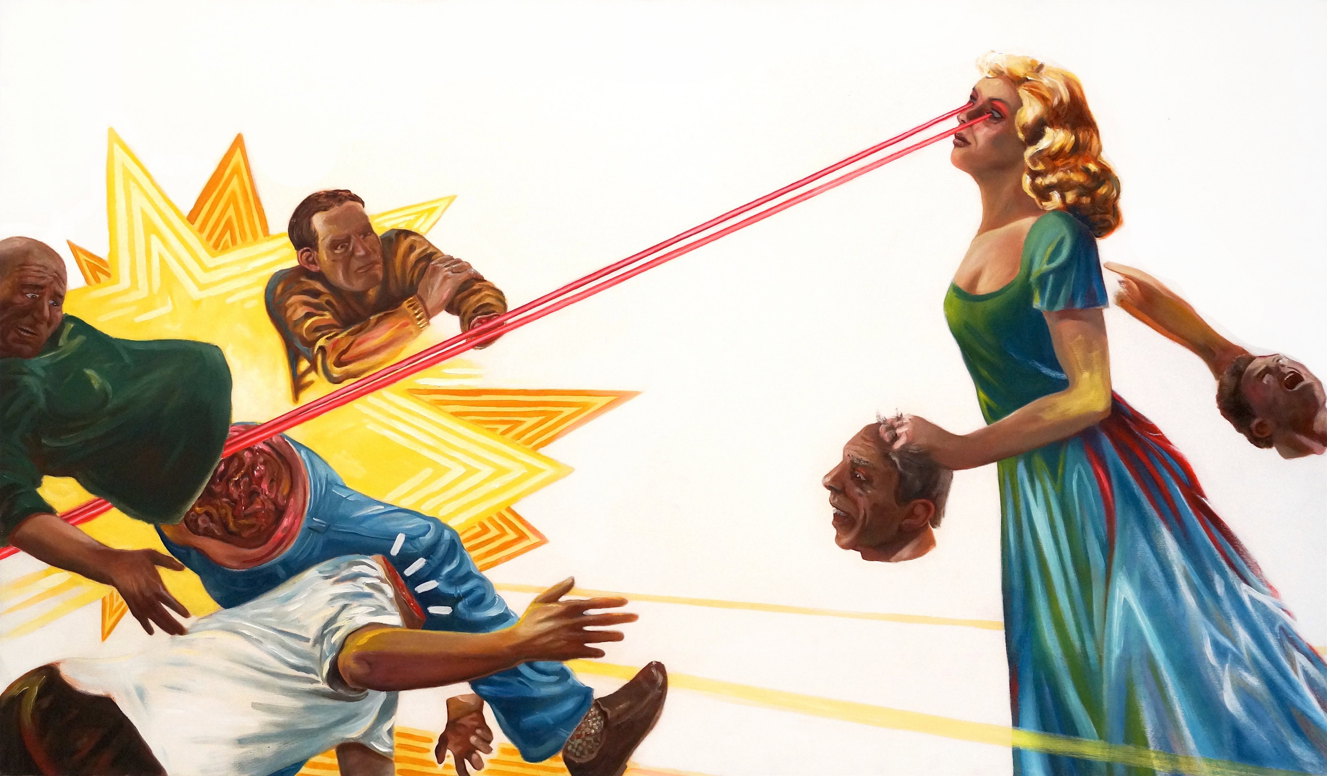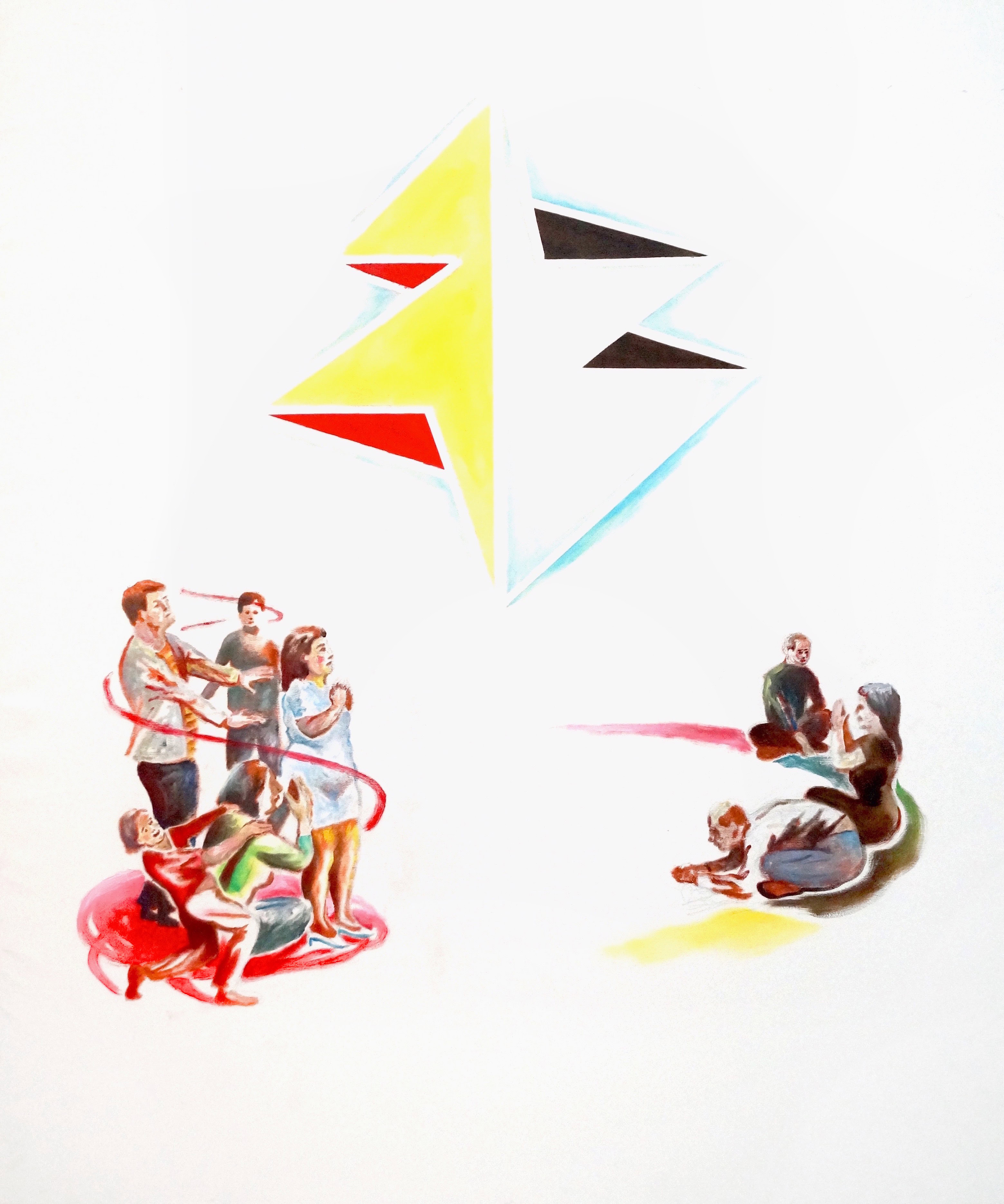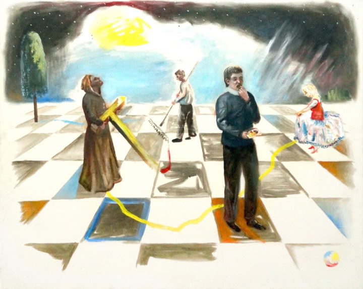 besteht aus Arbeiten spontan entstandener figurativer Gegenüberstellungen und Arbeiten, denen weitreichende Recherchen u.a. zu Gesellschaftsstrukturen vorausgehen. Salome etwa entstand spontan, inspiriert durch Filme und Lektüre. Komplexe Bilder wie „A Short history of violence“ erarbeite ich aus vielen Ideenskizzen und Recherchen.