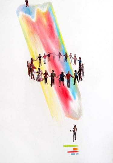 Weiße Räume ermöglichen es, einfach und spielerisch mit Objekt und Subjekt in vielfältigen Codierungen zu verfahren. Diese Codes können abstrahieren, präzisieren oder relativieren. Sie fügen sich aus den im Bild nebeneinander gesetzten Objekten zusammen, wie eine Art Bild- oder Hieroglyphenschrift.